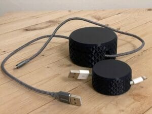 Behind door 7 we have a practical print. Desk cable management clips, made in black PETG. Perfect for keeping cables tidy and out of the way, these simply attach with a screw.
